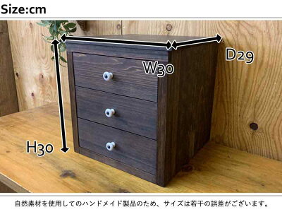 三段小引出し ダークブラウン w30d29h30cm 白つまみ 三段 ミニチェスト 卓上ドロワー 木製 ひのき ハンドメイド オーダーメイド 1582810