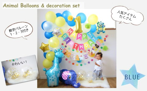 deerzon お誕生日の飾り付け 【動物バルーン 88点セット】 数字バルーン1、2、3付き ・誕生日のお祝いに!動物バルーンセット ・ブルーをベースにした華やかでかわいい飾り ・くま、ぞう、きりんバルーンは大きい&可愛い ・飾り付けに必要なものが全て入っています! ・数字バルーン「1」「2」「3」付き 動物バルーン3種類! ・くま、ぞう、きりんのバルーンはどれもかわいい! ・ぞう&きりんはビッグサイズ。